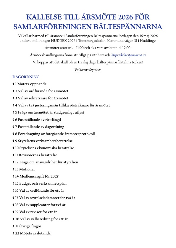 (Årsmötet kommer genomföras lördagen den 16 maj 2026 i samband med HUDDEX2026.)